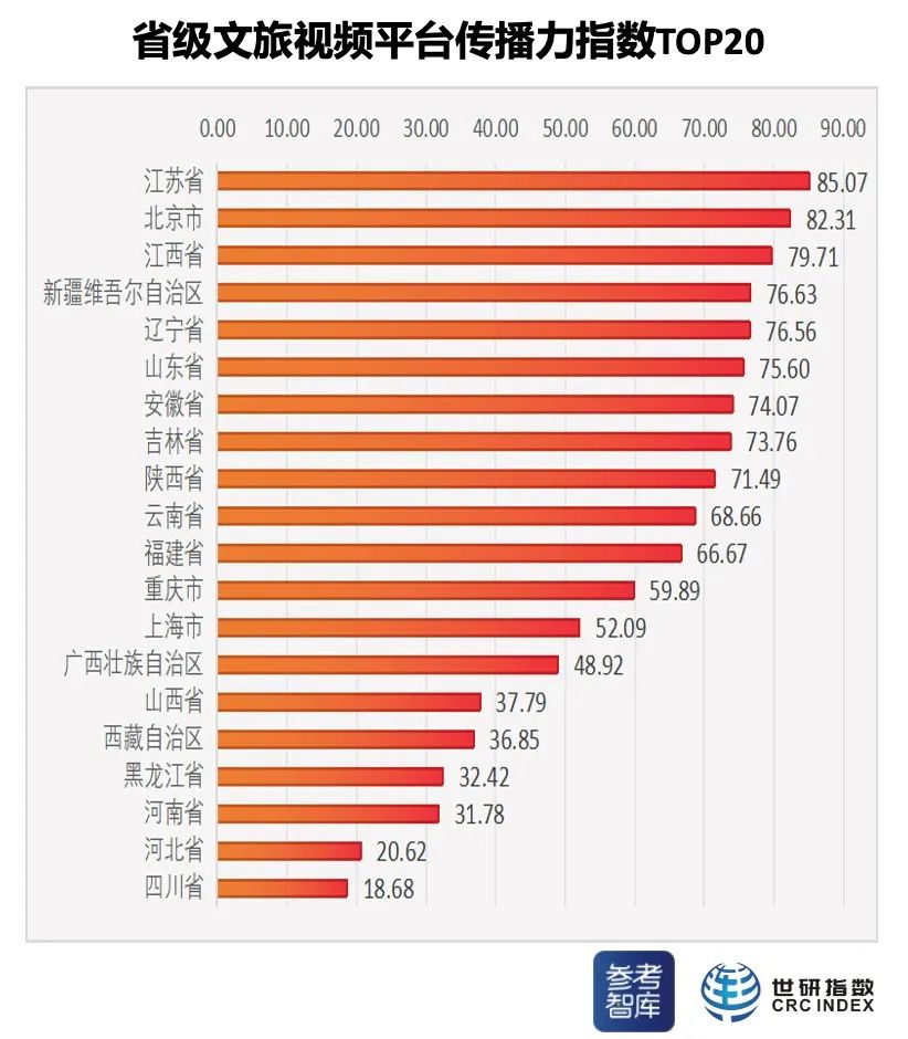 中国省级文旅视频平台传播力指数TOP20(2024年10月) 制图:世研指数