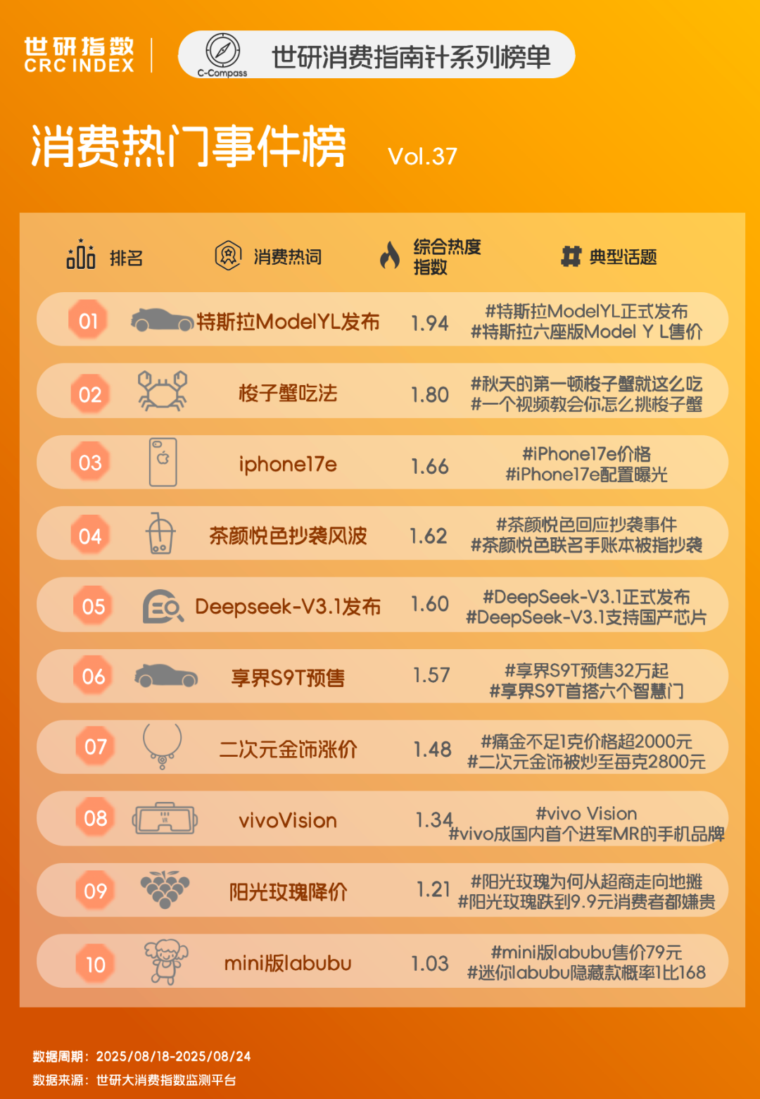 在上周的监测期内,《世研消费指南针》系列榜单特别聚焦消费热点与8月热门行业排名。